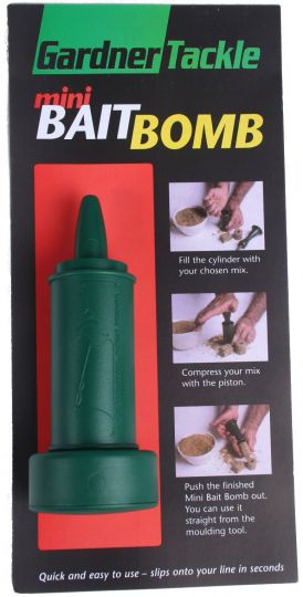 Die Gardner Bait Bomb ist das optimale Hilfsmittel um aus sogenannten Method-, Feeder-, Stick- oder Groundbaitmixen ein festes Gebinde herzustellen. Hierzu wird die Außenhülle der Bait Bomb einfach mit einer beliebigen Menge an Futter befüllt. Anschließend wird das Ganze mit dem sogenannten Kompressor verdichtet, dadurch entsteht eine Art Pellet mit innenliegender Nut. Somit kann das Futter auf die Hauptschnur oder das Vorfach aufgefädelt werden ohne das abgeschnitten werden muss. Das Futter kann dann wahlweise über das Blei oder auch den Hakenköder geschoben werden und löst sich nach dem Einwurf langsam auf und erzeugt eine verlockende Wolke. (Die Auflösezeit läßt sich dabei auch über den Kompressionsdruck steuern). Der Vorteil gegenüber Funnelwebs ist hierbei, dass die komplette Montage wesentlich flugstabiler wird und somit exakter und weiter geworfen werden kann. Des weiteren schützt dieser "Pellet" den Hakenköder beim Angeln in dichtem Kraut. Nicht nur im Frühjahr eine perfekte Methode um punktgenau am Haken anzufüttern.